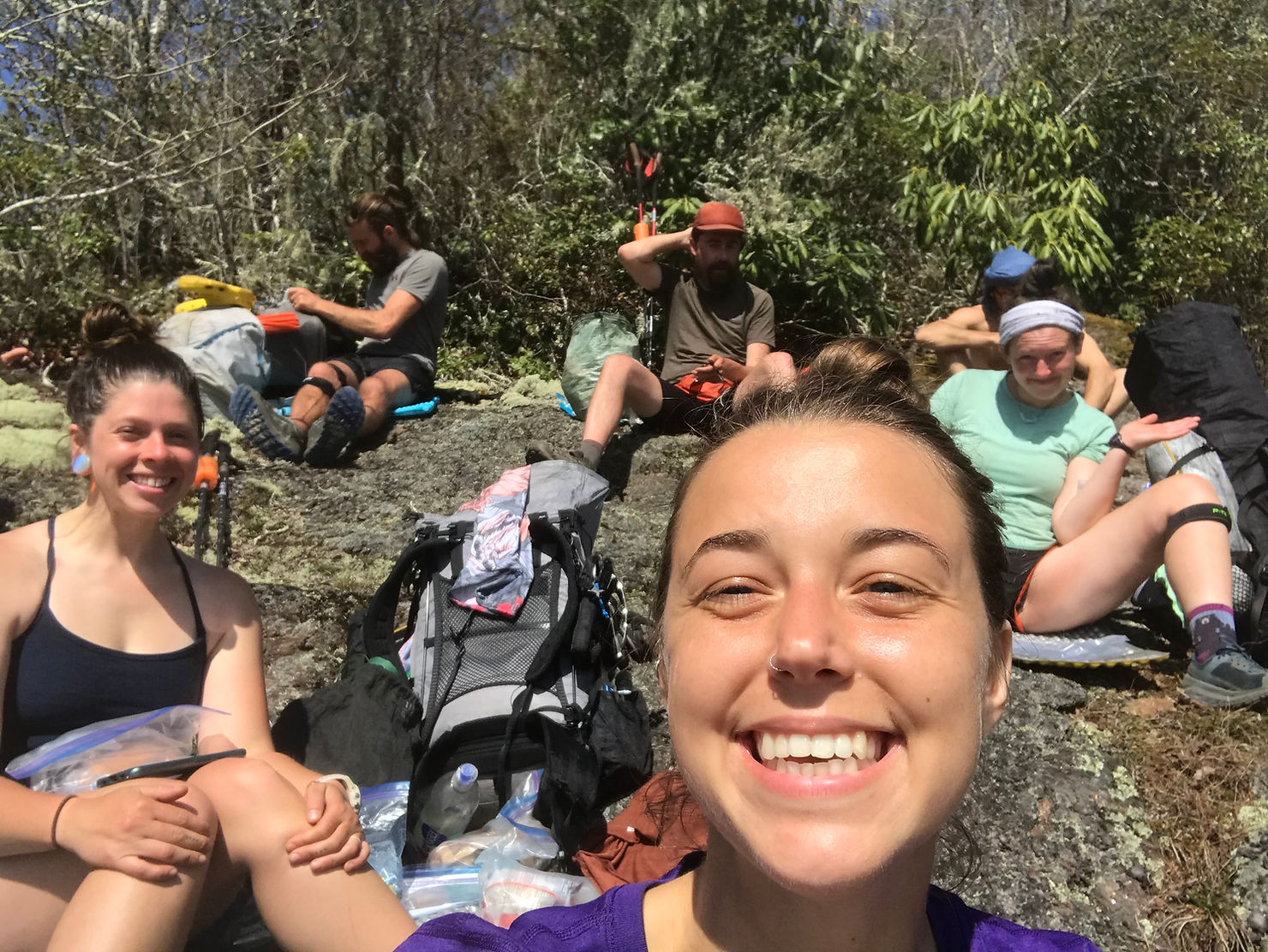I finally caught up with my tramily and we all ate lunch together on top of a rock bald. The view was okay but the company was great!