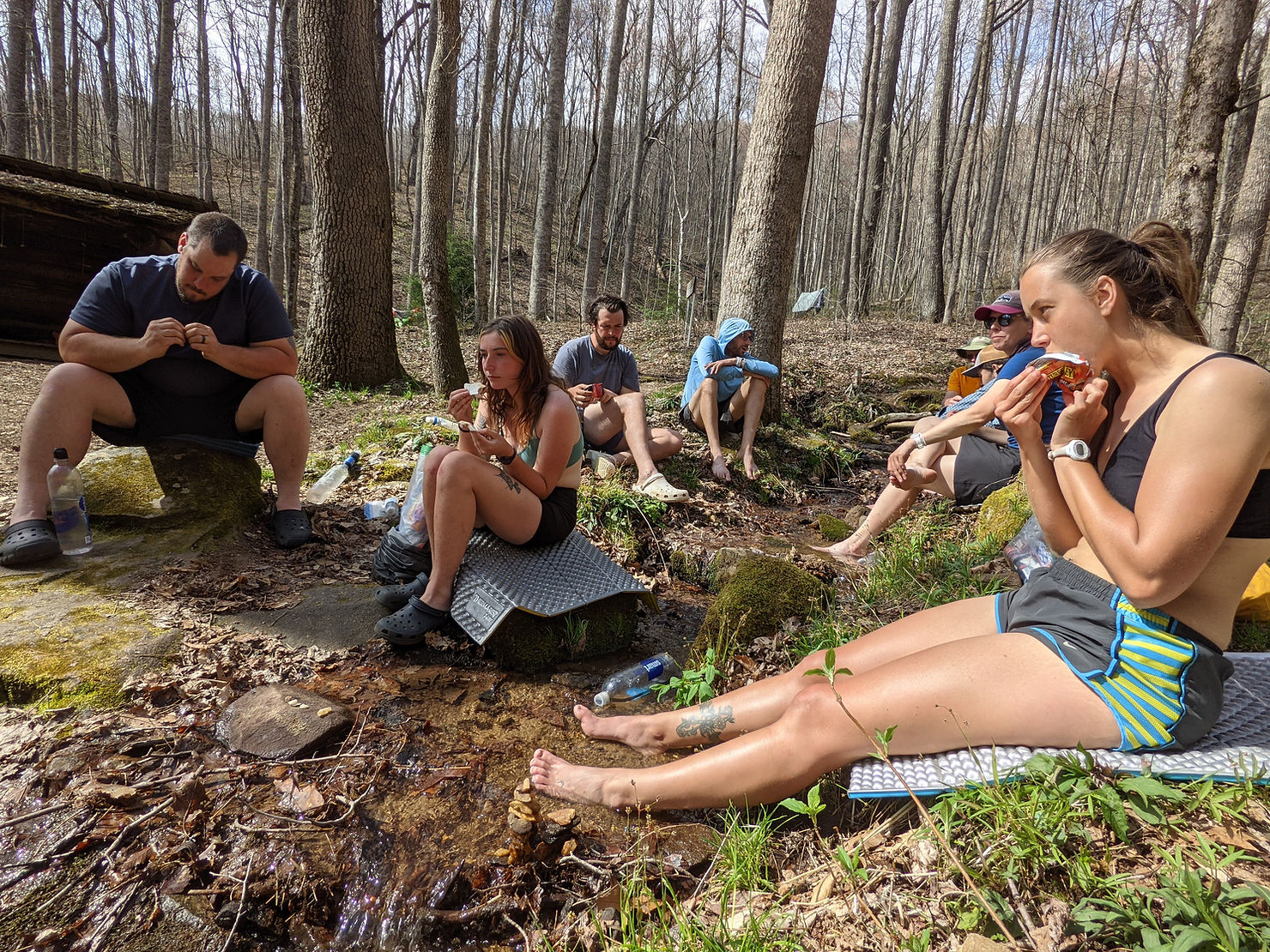 I got to camp around 2:30pm and we all just chilled with our feet in the creek in the sunshine for a while. Party Dave and Drew caught some crawdads and we all just chatted for a while. It was super nice.