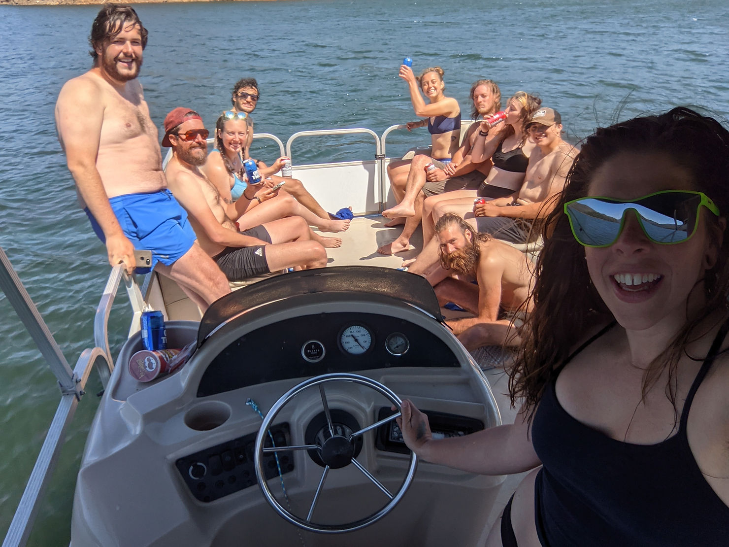 Best day ever – woke up at the Inn, all you can eat breakfast at the Village, truck bed hitch to the Dam, then the tramily rented a pontoon boat together! Parents picked me up in the afternoon very drunk from a day on the boat.