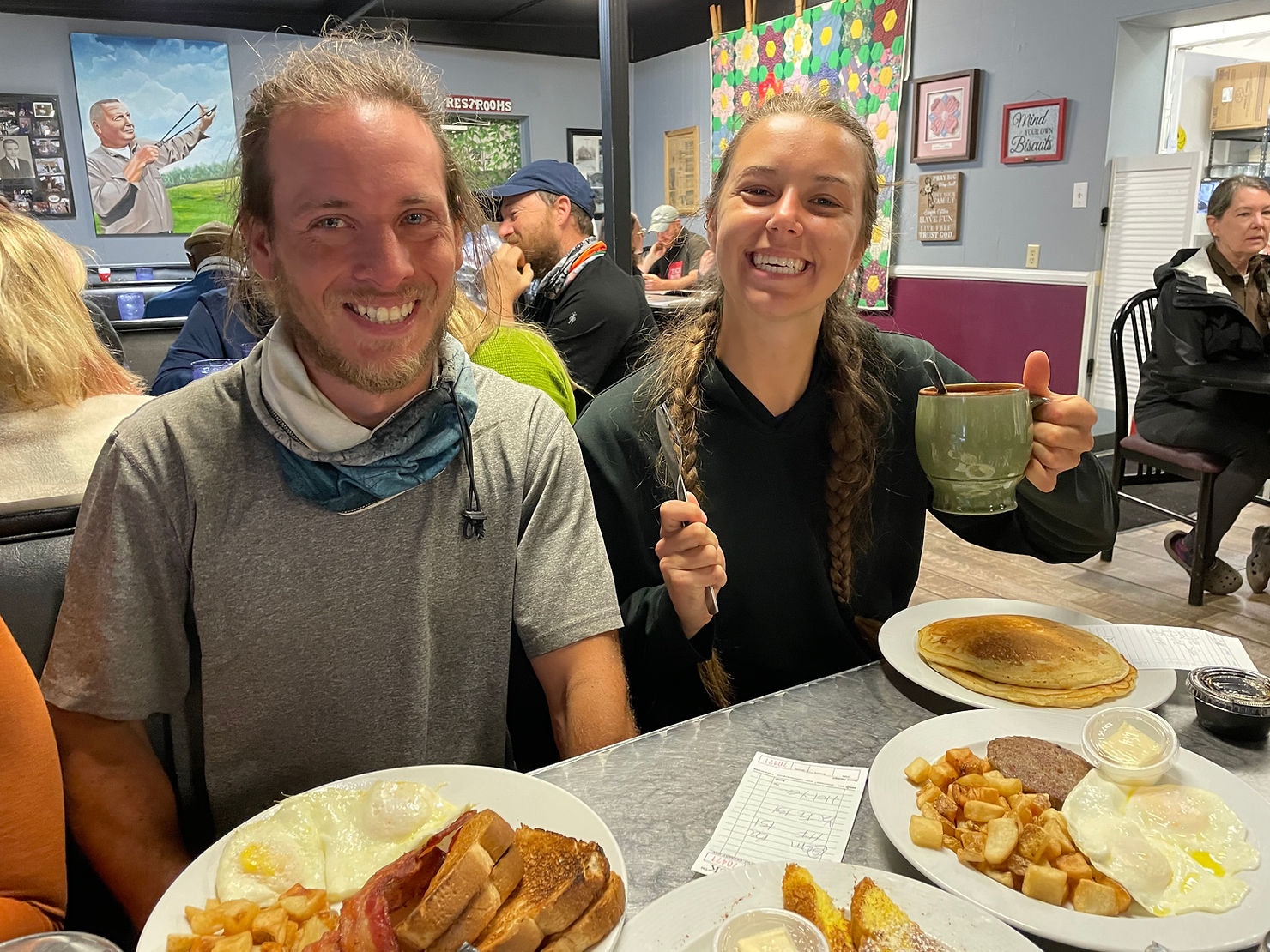 Today was a short and sweet nero. We woke up expecting rain and thankfully made it out of camp and all the way to Hot Springs without a drop. The early morning hike was cool and crisp, I enjoyed hiking alone into town. We reconvened at the Smoky Mountain Diner, which was filled with nothing but hikers, and ate our weight in breakfast food.