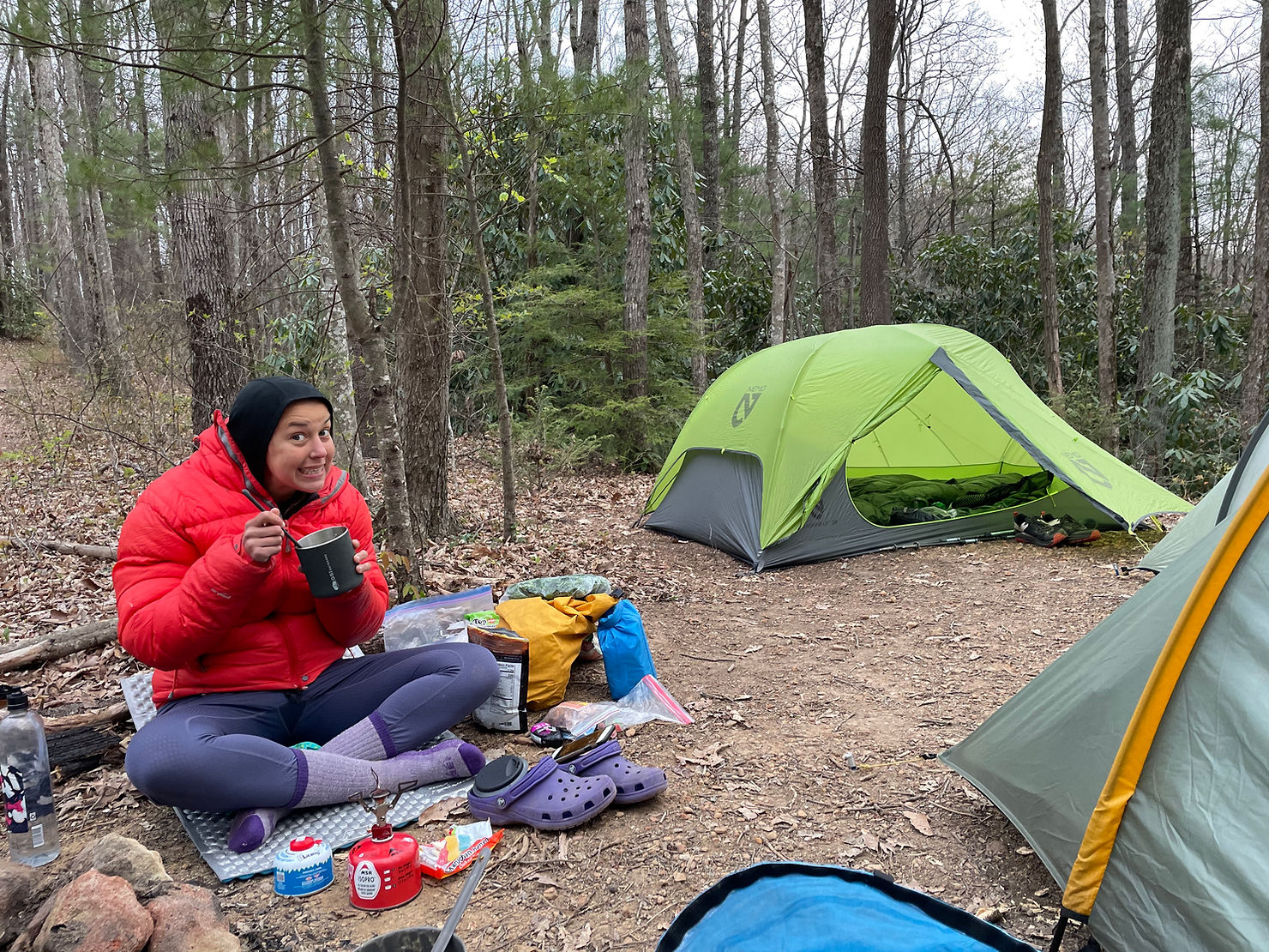 We got about a mile away and ran into Wilson setting up a stealth site just off the trail and there was plenty of room to join him, plus he said there were like 5 people ahead of us going to the already full shelter so we decided to call it a day. Wilson is great company and we’ve had a lovely evening. Excited for my new sleeping pad!