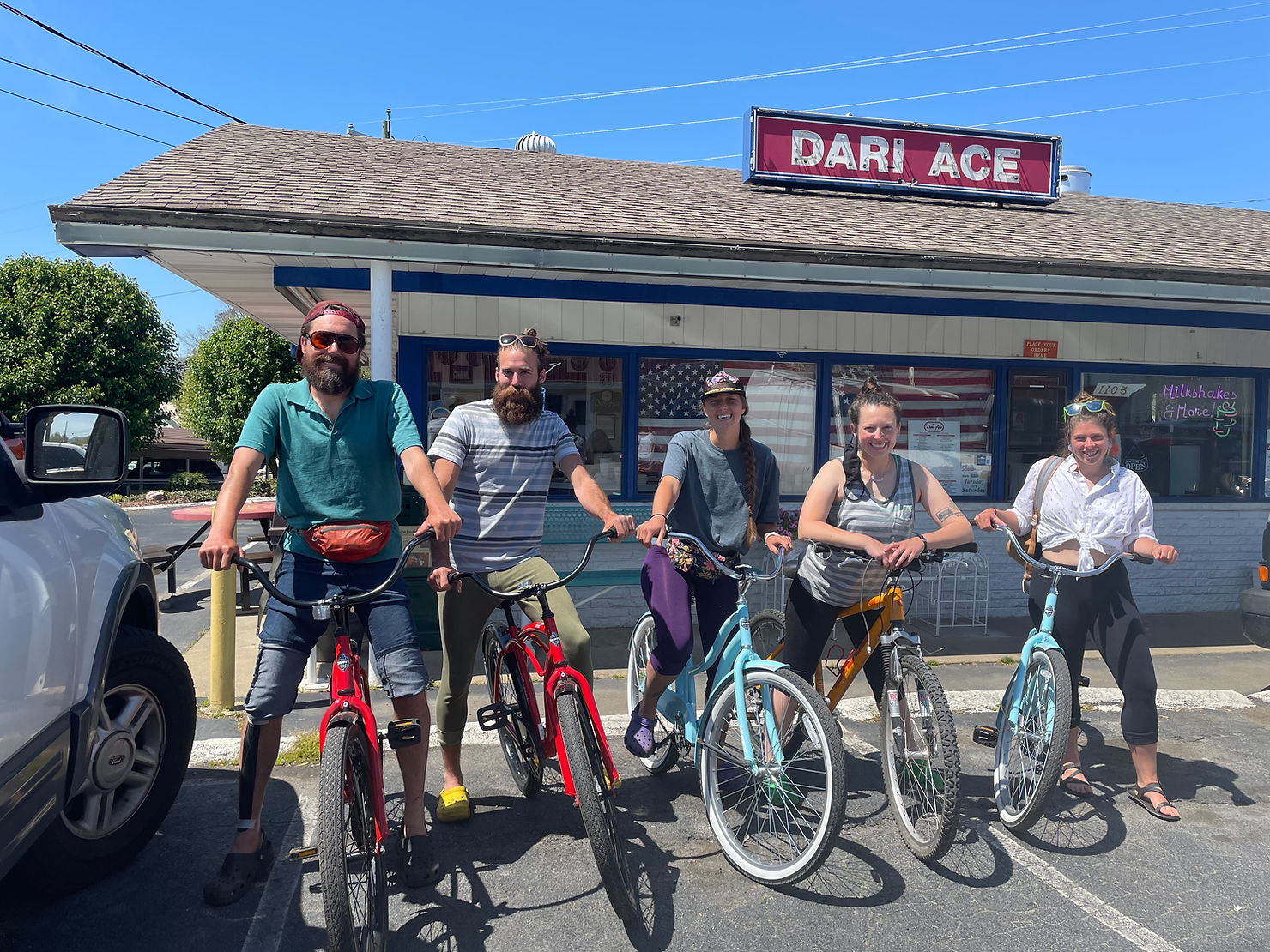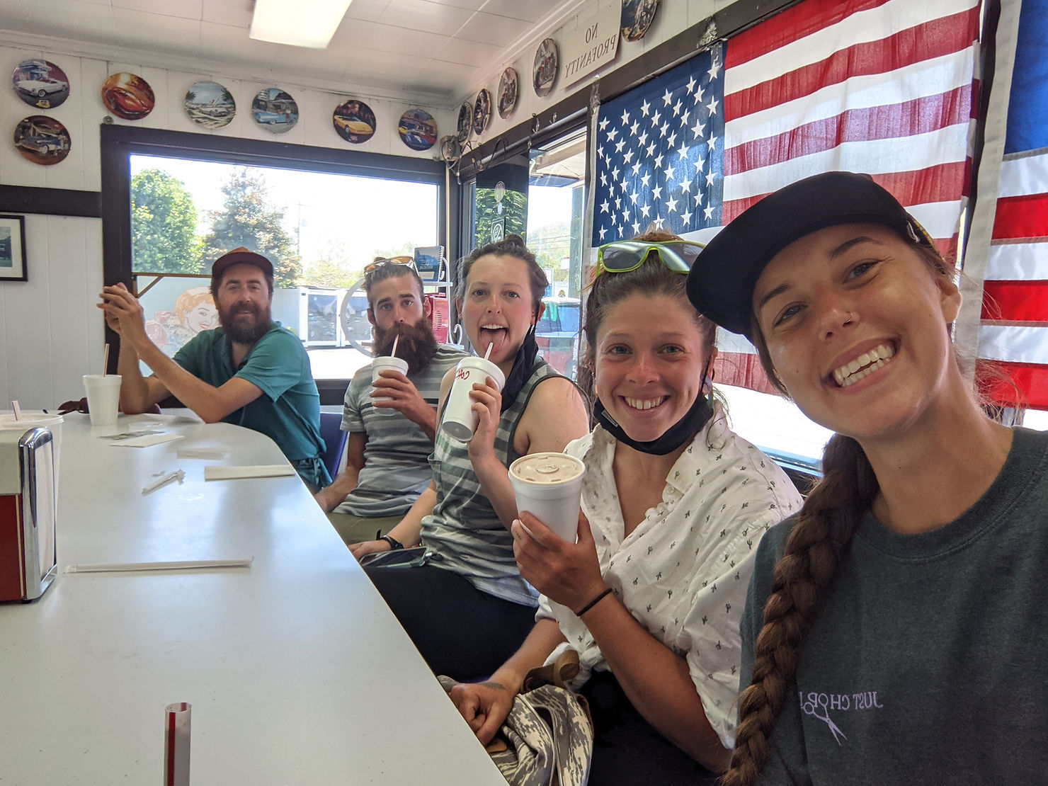Uncle Johnny’s is right off the AT and we saw lots of our friends. We showered and did laundry (my 1st time in loaner clothes) and took the hostel bikes for a cruise around town. We got lunch at this delicious drive-in place and did makeshift camp chores before catching the shuttle to Walmart.