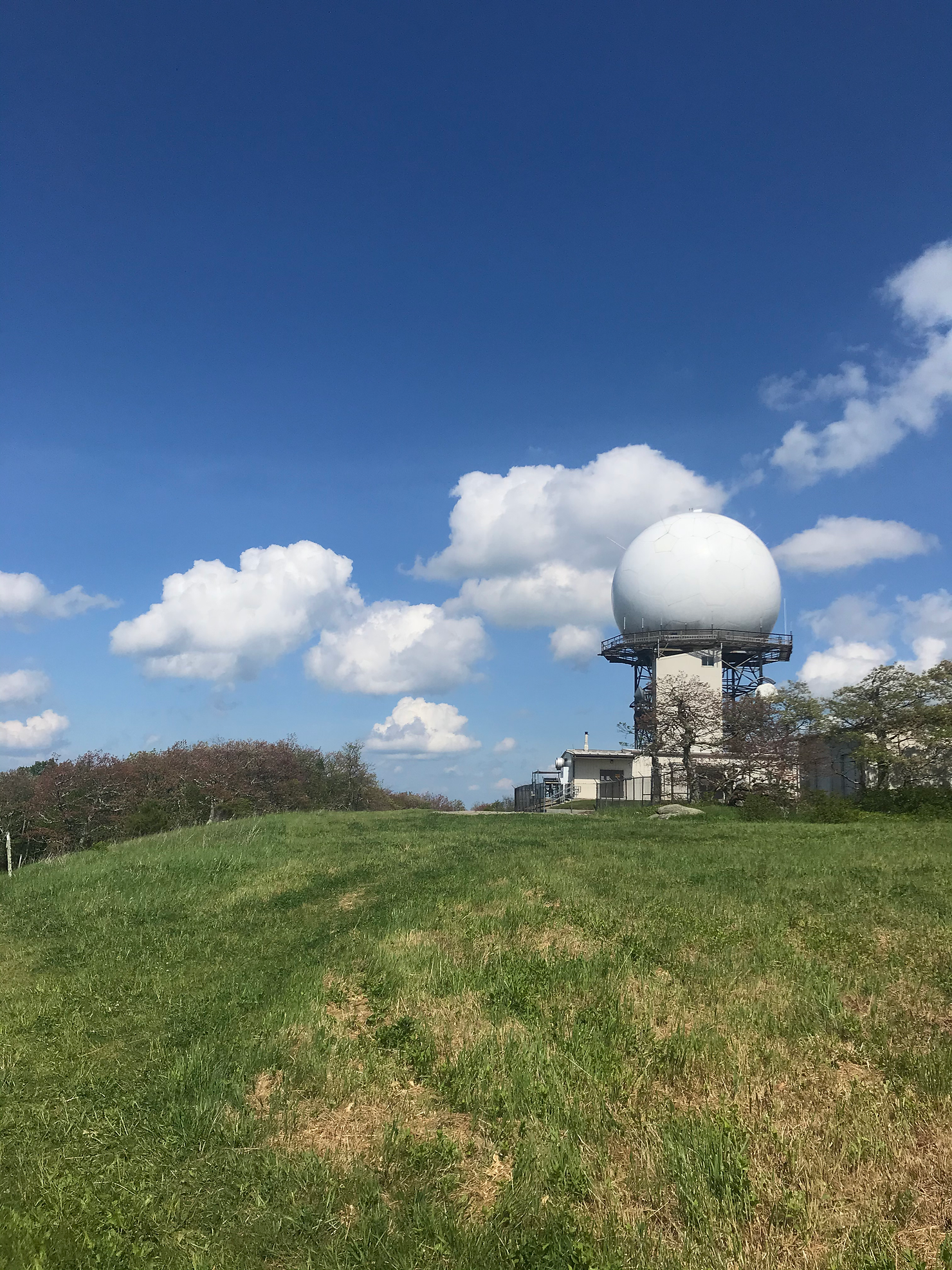 I trudged up to the first climb and wasn’t doing great mentally until I stopped at a shelter for lunch. I ate with Mega, Simple Man, Garfield, and El Jefe (the nice older druggies) and was able to reconnect with Sticks and Slobber before the last big climb. It was so good to see them and I know they made a conscious effort to let me catch up. We 3 caught up to Gooey at the top of the Apple Orchard Mountain (by the golf ball) and decided to road walk on the Parkway for a while. The views were great and we got an unsolicited hitch for a couple of miles.