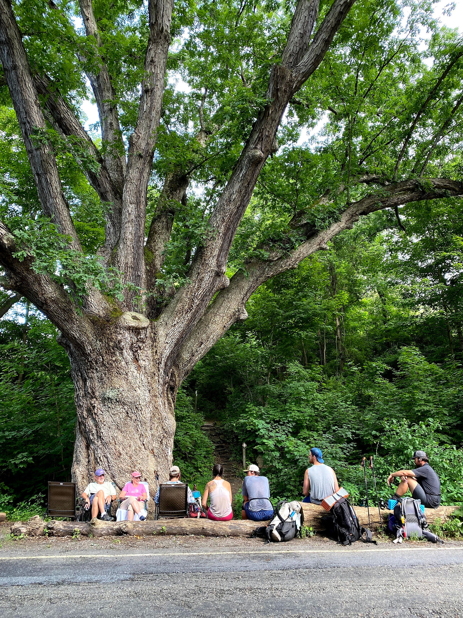 I hiked with Hangman for a while which was nice because I spend so much time with Truffles, I haven’t really taken the time to get to know him one on one. We all stopped a few miles in for a break by a stream, and less than a mile back on trail we got some trail magic by this sweet older couple at the Dover Oak.