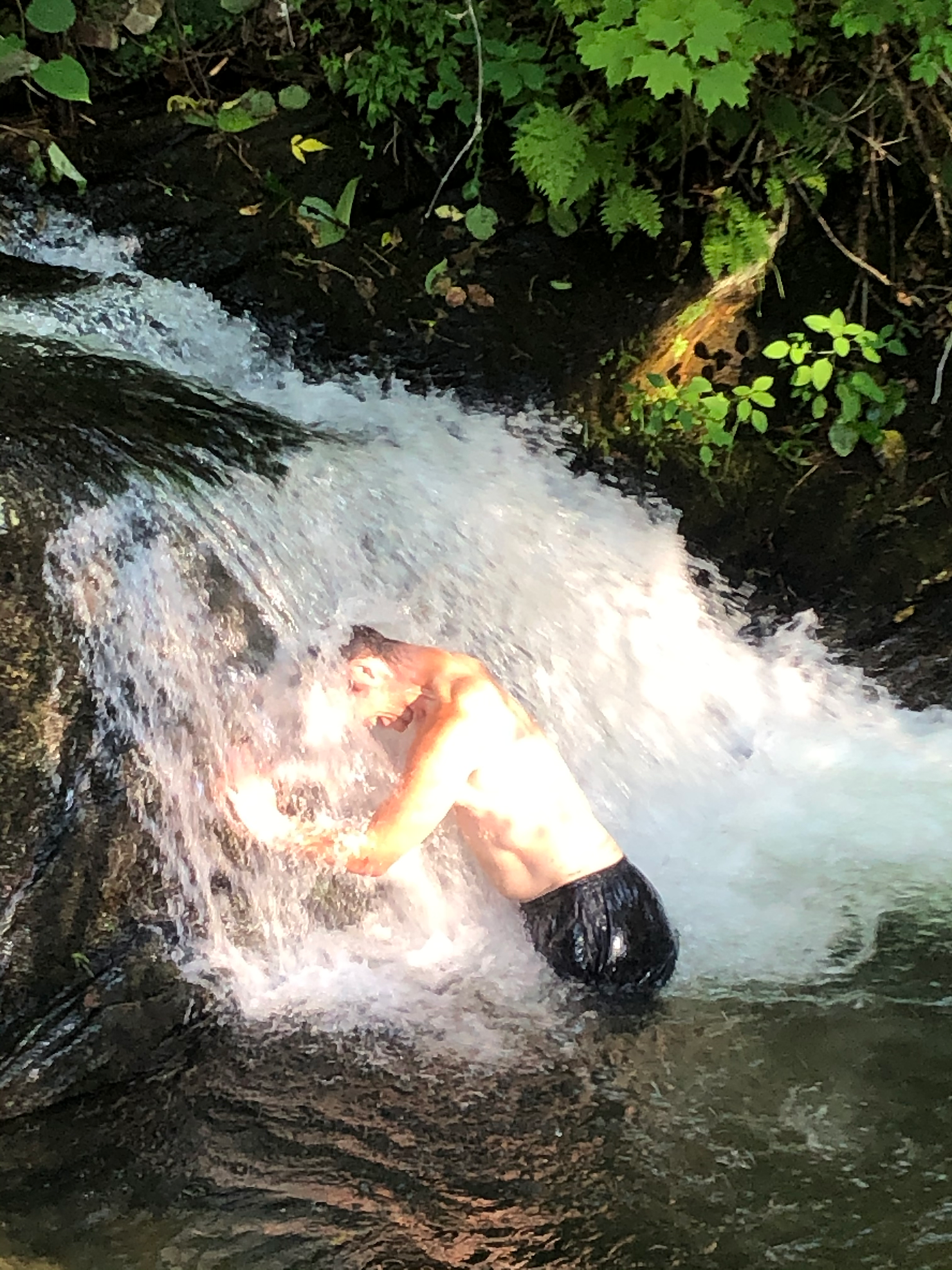 The road was beautiful and I listened to a book so thankfully it went by fast. In town, we were able to camp in a trail angel’s beautiful yard (complete with a waterfall, outlets, and a custom-built privy!) Truffles and I stayed up talking for a while. I told him I was in love with I’m. Yay!