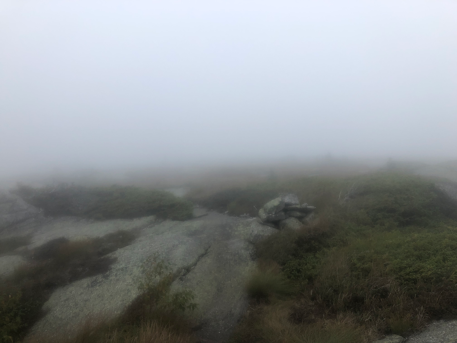 With our bellies full, we began the afternoon climb. Per Guthooks, the rest of the day looked like it would be straight uphill, so I was feeling anxious and unable to hike. It didn’t help that rain was in the forecast and I was worried about having to climb wet rock slabs. With lots of encouragement from the boys I hiked on, and thankfully it didn’t rain on us! We even went about treelike again for Saddleback Mountain and the Horn, but didn’t get any views because we were socked in.