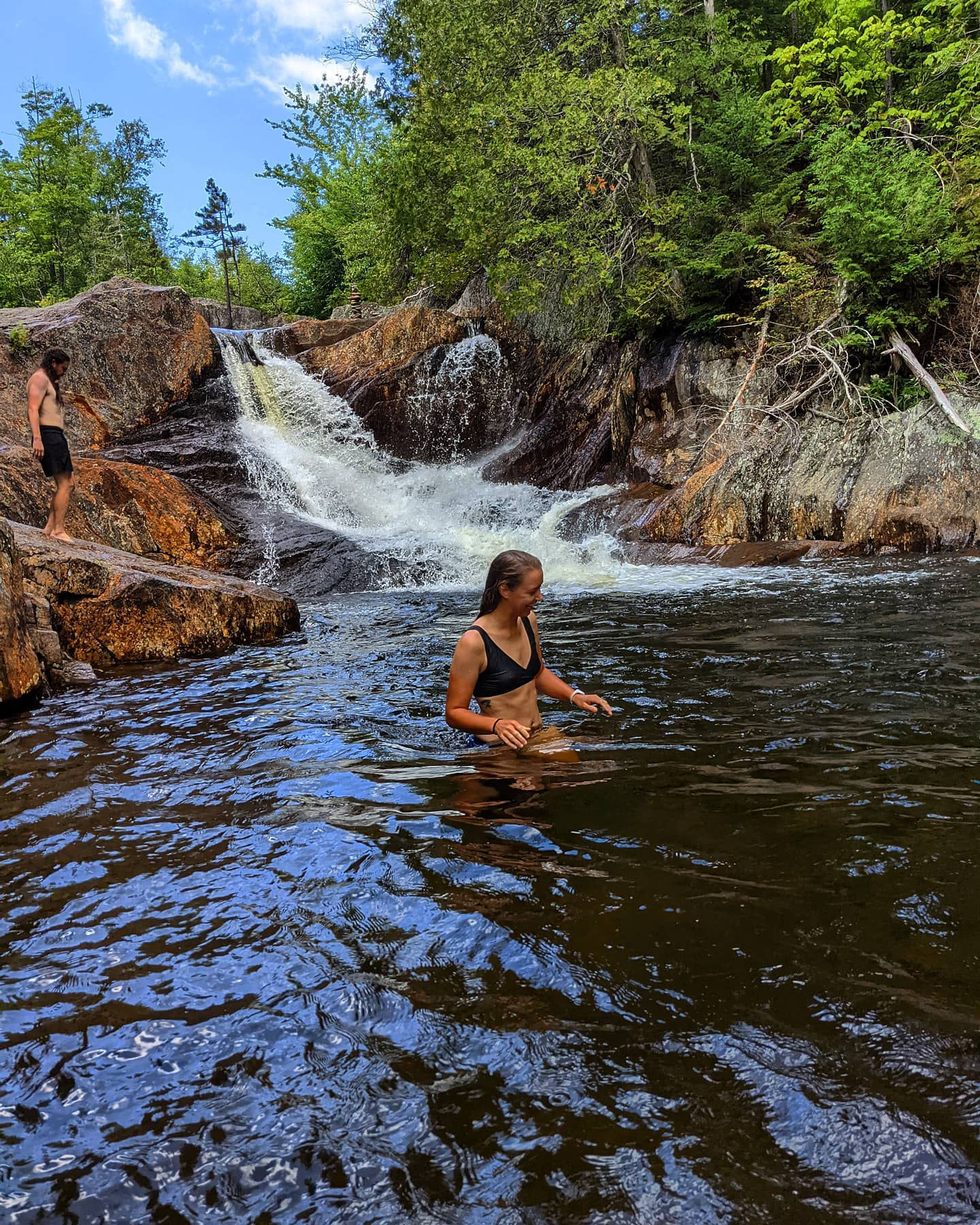 After my interview, Dakota, Jen’s son, took Creature, Dumb Horse, Party Dave, Biscuit, and I to an AMAZING swimming hole for a dip. We brought beers and jumped from one waterfall to the next, it was beautiful.