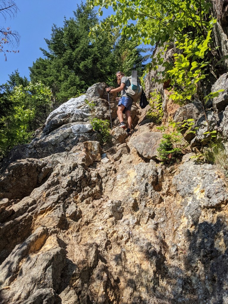 In just under 2.5 miles, a NoBo hiker must climb almost 2,000 feet of elevation from the Eliza Brook shelter to the top of South Kinsman Mountain in New Hampshire. I remember distinctly hiking alone up this mountain and wanting to take a break to cry. Not to rest, but literally to sit down and cry because I was having such a hard time.