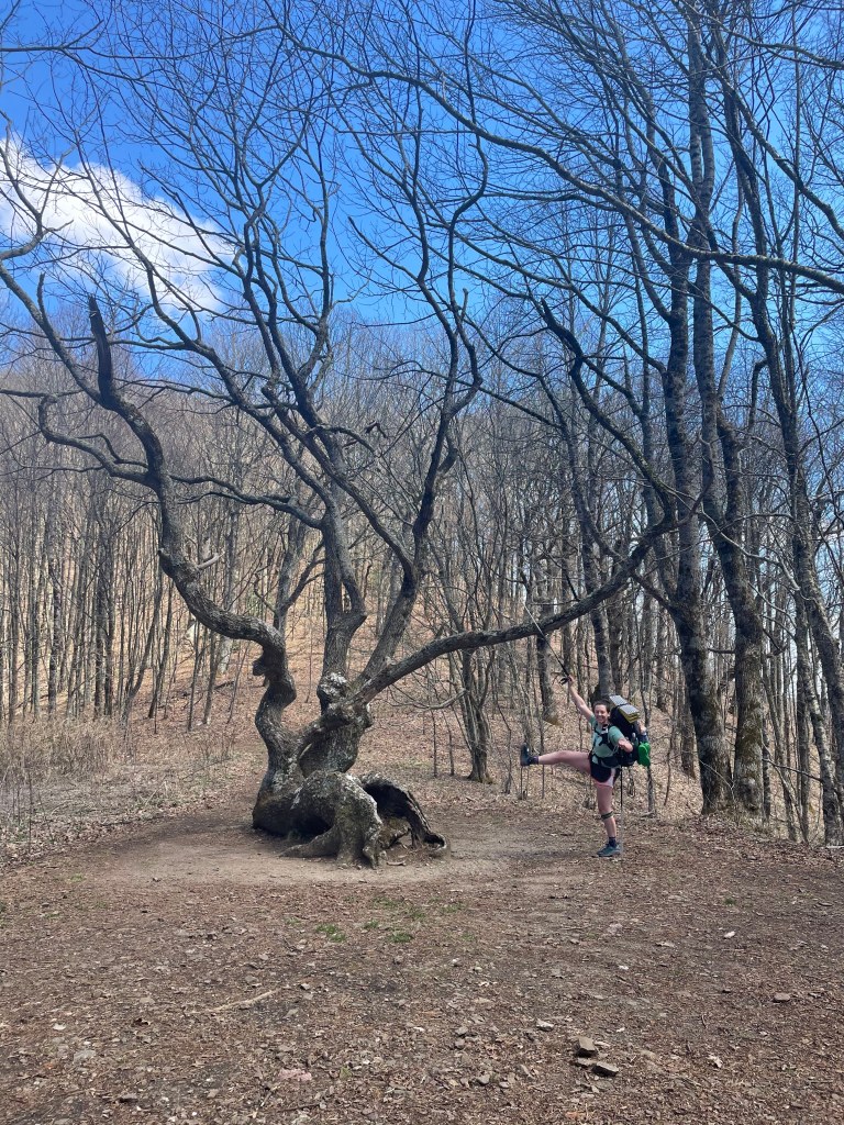 Being a North Carolina native, I was thrilled to have crossed the line from Georgia into the old north state at mile 78. My friends and I took pictures at the state line and even had a photoshoot by an iconic tree at Bly Gap.