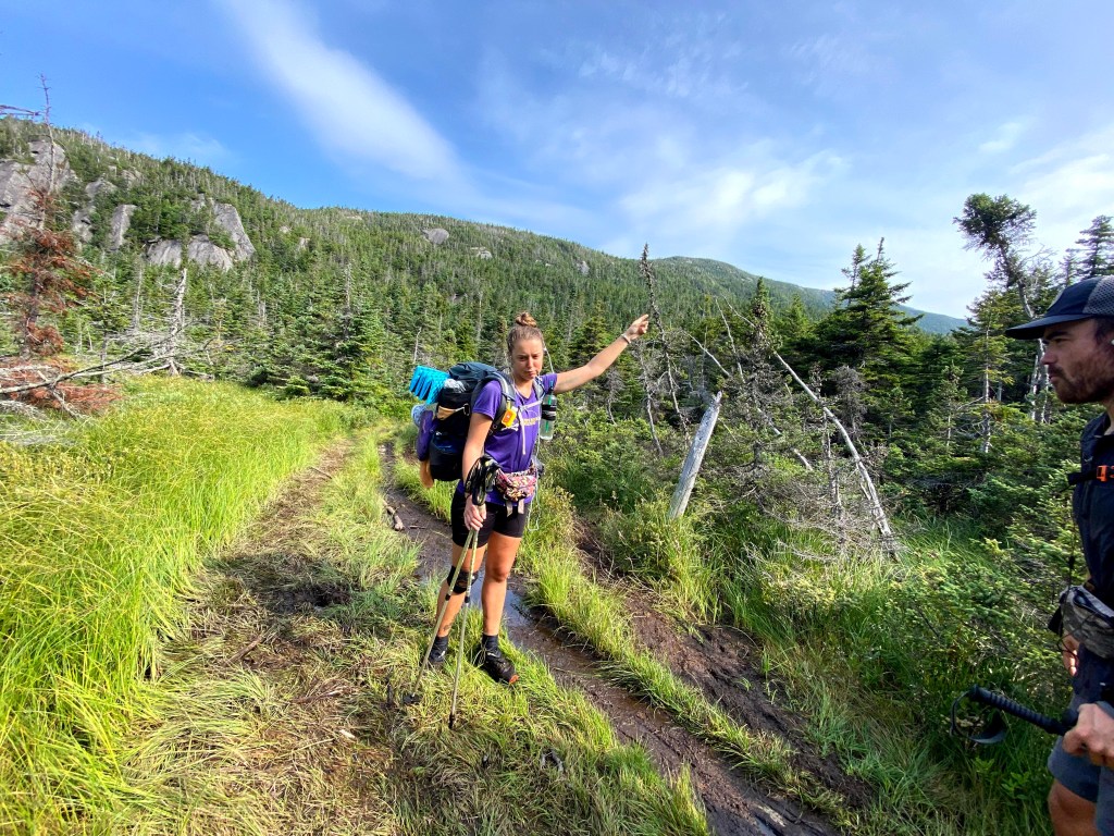 My trail journal from the day I climbed the South and North Kinsman mountain goes as follows: “It felt like the trail was climbing straight up the mountain; lots of boulders to climb over. It wasn’t too bad, and there was a really pretty bog about 1.5 miles from the Kinsmans, but it looked right up to the summit and was crazy intimidating. The climb up was the toughest yet—so much vertical climbing that required me to use my hands in order to pull/push myself up. It felt like it took hours, and I was cranky and exhausted by the time I got to the top.”