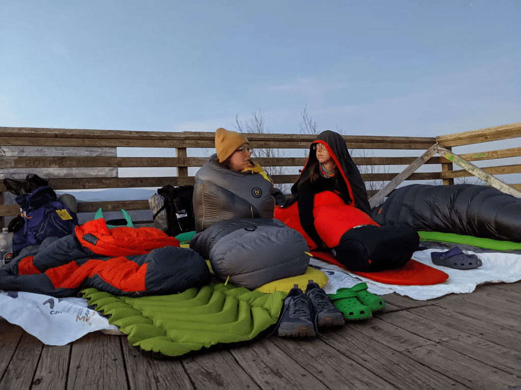 My understanding of the difference between a sleeping bag and a quilt is that a quilt lays on top of you whereas you lay inside of a sleeping pad. Truffles used an Enlightened Equipment Enigma Quilt that only weighs 22.23oz. The weight alone makes me want to upgrade! There are other notable brands that make quilts such as Feathered Friends, and REI has even jumped on the quilt bandwagon to try and stay competitive in the ultralight game. My next big gear purchase will likely be a quilt of some sort just in order to cut down on weight.
