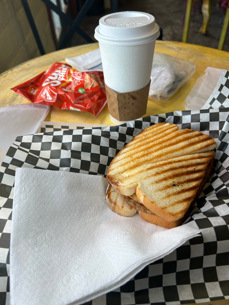 Today was a doozy. We woke up at the hostel and tried to soak in Mary’s hospitality as much as possible in our last hours there. I drank coffee on the porch and chatted with Blink and Bryce before my tramily packed up and headed into town for breakfast. The boys wants burritos but I wanted something else, so I treated myself to a little alone time and got breakfast at The Ovens of Patagonia. I had a delicious pastry, breakfast sandwich, and huge caramel latte.
