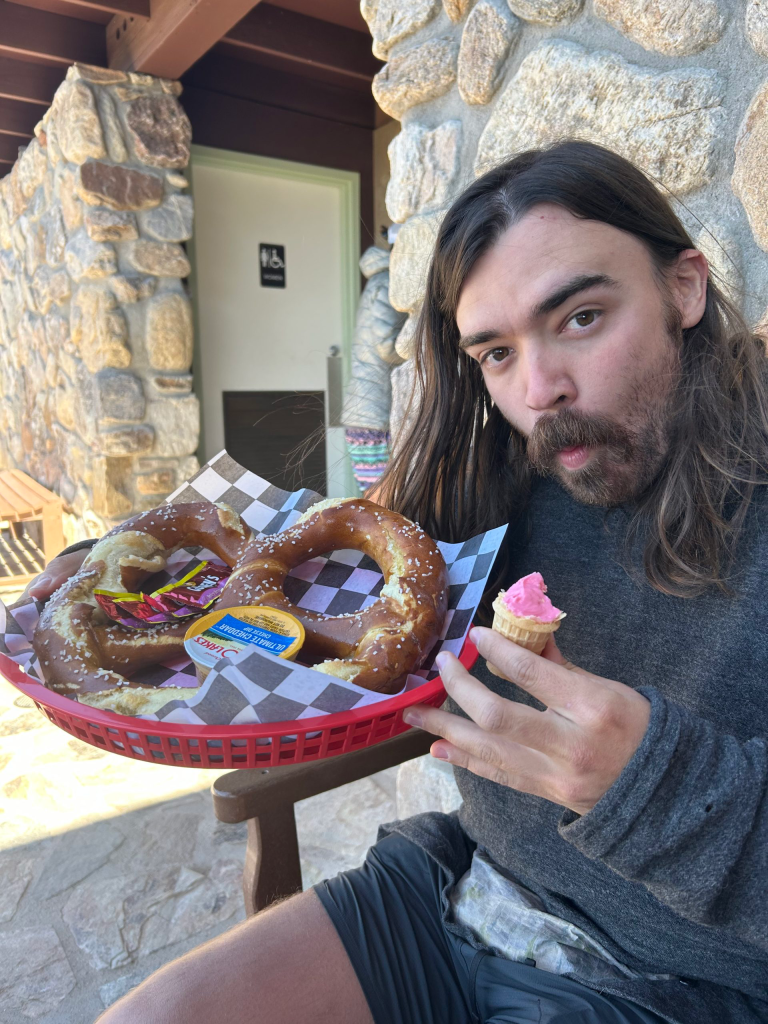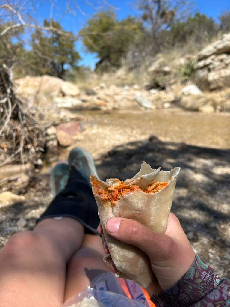 At Colossal Cave we were greeted by other hikers and even reunited with Bryce. This was the most new faces I’ve seen yet on the trail, I felt a little out of place since it seemed like everyone already knew each other. Truffles and I split a prickly pair margarita, ice cream cone, and colossal pretzel before shouldering our packs and hiking.