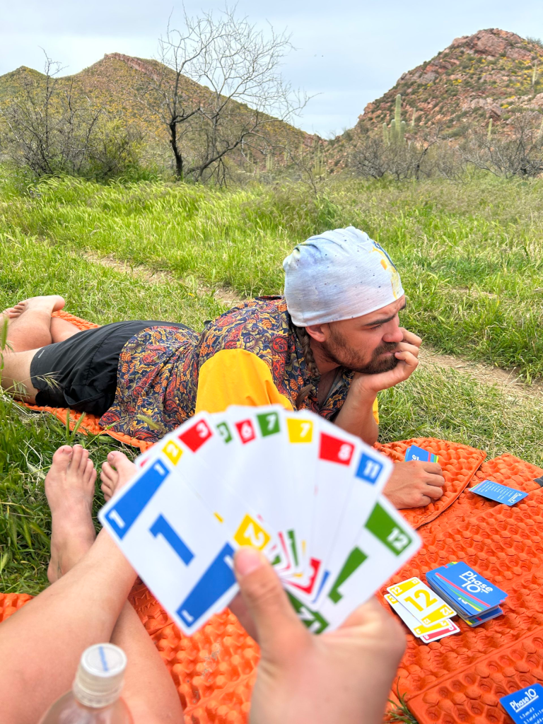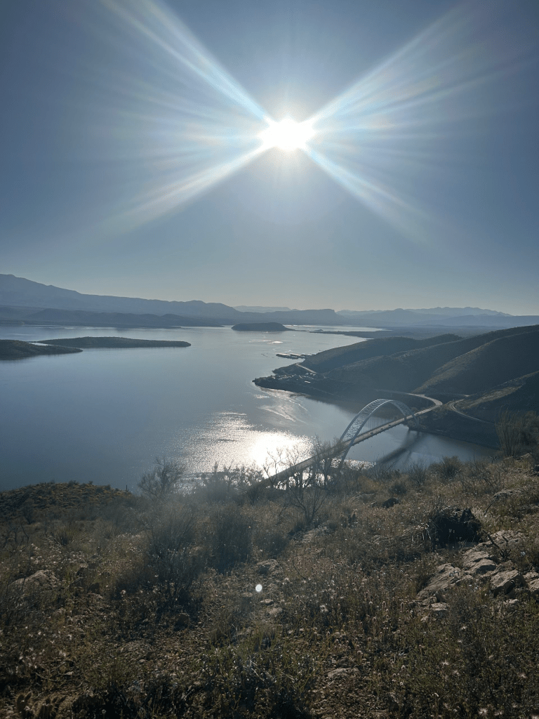My alarm went off at 4:30am. We wanted to vacate the marina before the store opened, thankfully no one came by to tell us we were trespassing. My first night cowboy camping on the AZT and it was on astro turf outside of a closed down bar. Sometimes the trail is funny like that. We had a big day planned with lots of elevation gain, so we also wanted to hit the trail early so that we wouldn’t be hiking in 90+ degree weather.