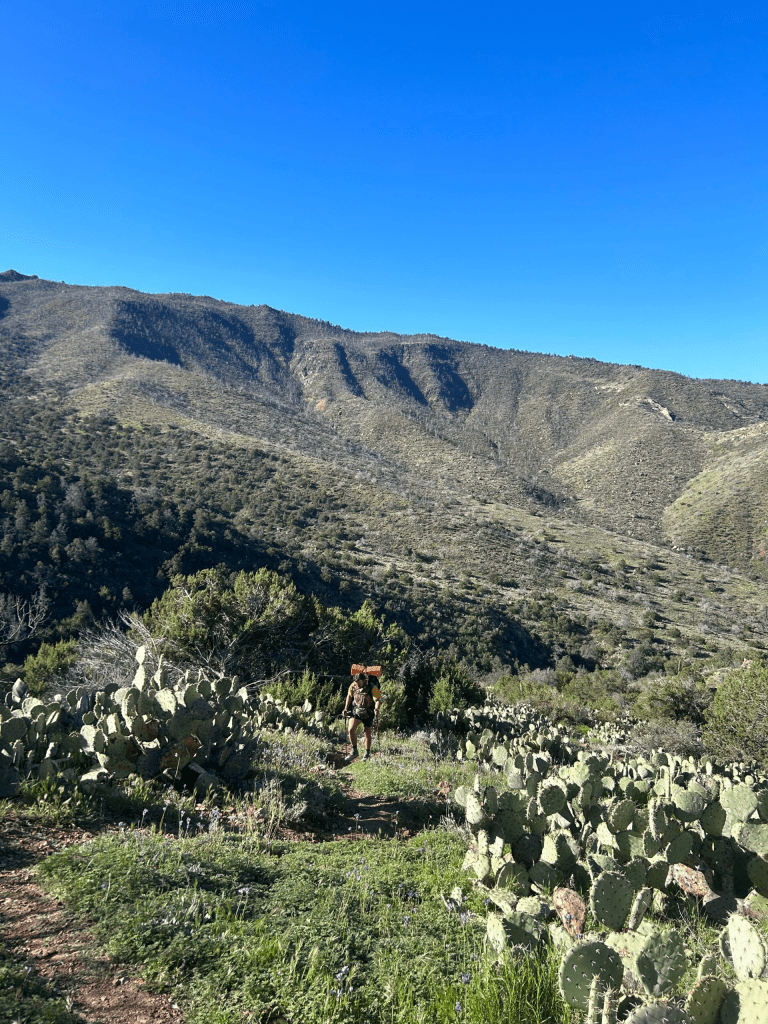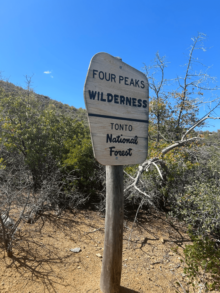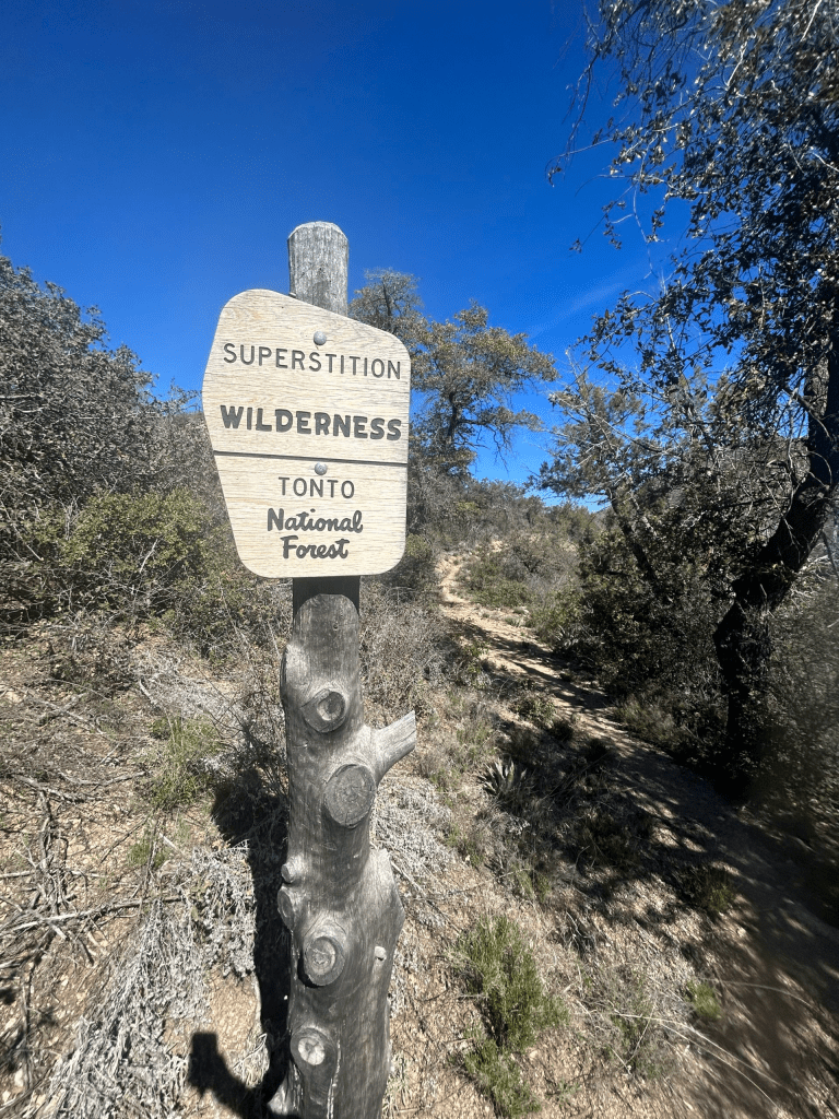 We took a short break when we reached the top and then set on our merry way. Within a couple of miles we entered the infamous Superstition Wilderness. According to FarOut, the 2019 Woodbury Fire burned 123,000 acres of the Superstitions. That means we walked through a majority of burn area. There were still lots of scaring and charred trees all around. I’ve heard people talk about how incredible the Superstitions are, but I honestly I wasn’t that impressed. I felt like we’ve seen pretty sections of trail that are better maintained. So far we haven’t seen anything in the Superstitions that have blown my socks off. Maybe that will come tomorrow before we exit the boundary.