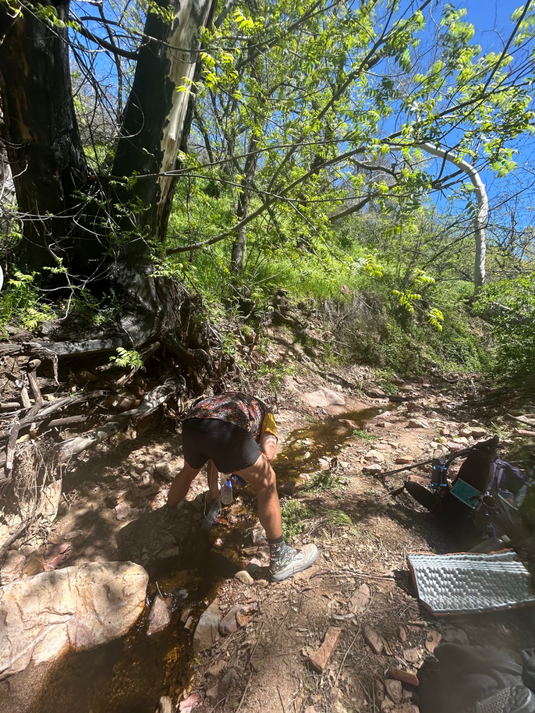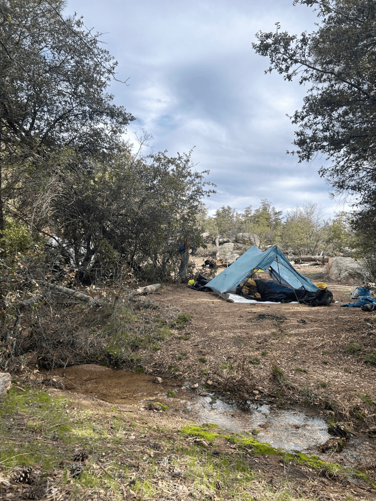 The rest of the day can be summed up by saying we hiked uphill in the direct sun. It was about as fun as it sounds. In almost 18 total miles today, we did nearly 6,000 feet of elevation gain and 2,500 feet of descent. It was absolutely brutal! Hands down I think it was the hardest day on trail yet just because it never let up. The sun and the heat just made it all the more challenging. We had initially planned to go several miles farther, but by the time we all arrived at the water source by Adler Saddle trail, we were beat. We hadn’t seen many campsites all day (just because we were literally scaling the side of a mountain), but thankfully there were three decent spots tucked into the bushes near the creek. The four of us pitched our tents on somewhat slanted ground but were just glad to be finished for the day. We ate our dinners quickly and went to sleep as soon as it got dark. I think we’re all wiped after today.
