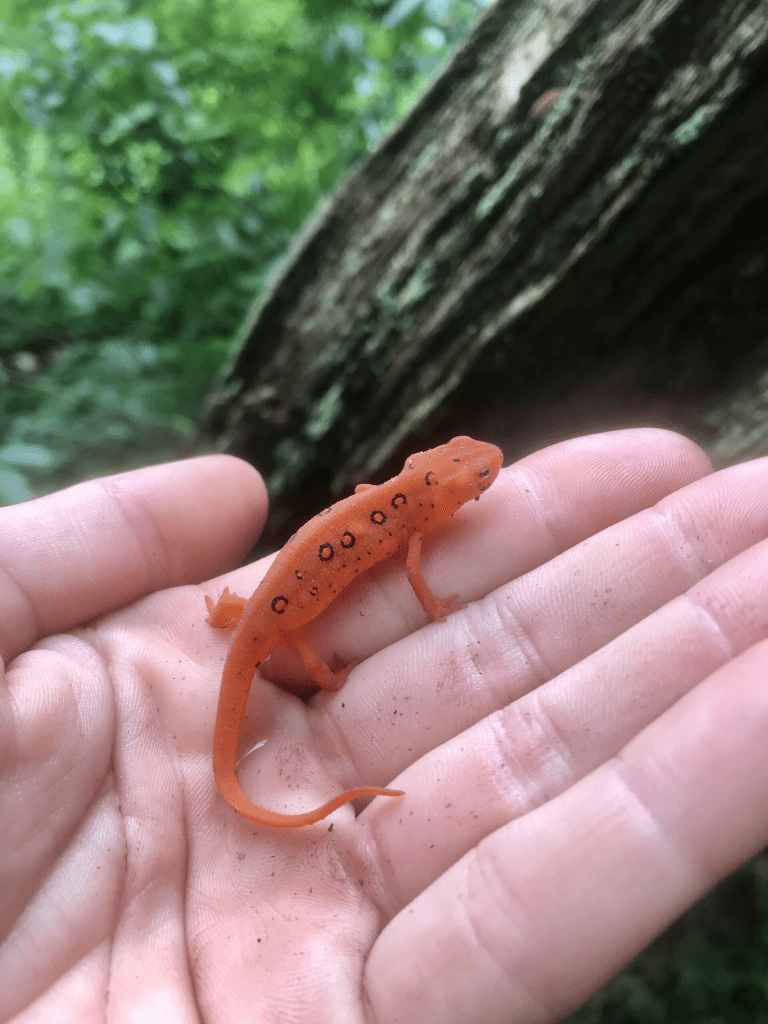 In a similar vein, I used to love picking up small critters while hiking. When you spend enough time staring at your feet, you start to notice all the wildlife on the ground. Specifically, my eye was always drawn to newts. The Eastern Red Spotted Newt is found in abundance along the AT, and the juvenile “efts” spend most of their time on land before maturing and returning to the water. I saw these little guys everywhere, and I often times picked them up to help them along their way (or so I thought).