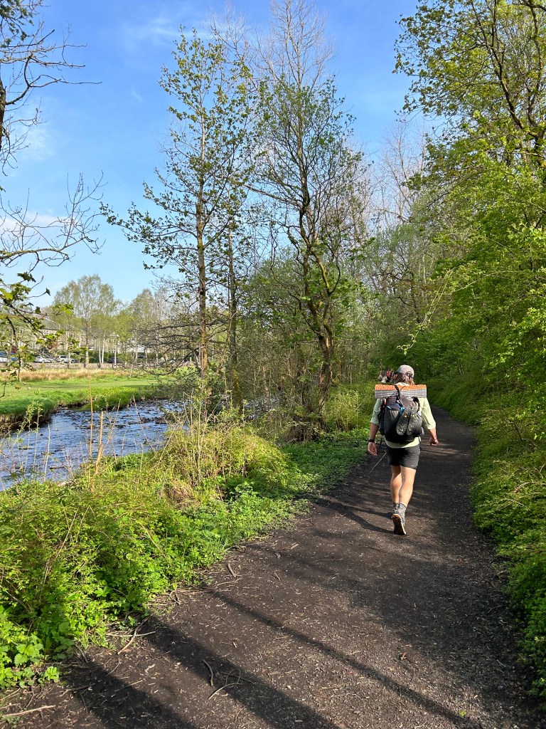 After breakfast we packed up and were off. We had a mile walk from the hotel back to the start of the trail, but we were on sidewalks and greenways the whole time. I am so impressed with Scotland’s greenways thus far- they are scenic and there seem to be so many of them.