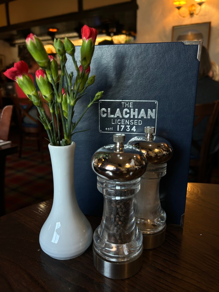 Most of the rest of the trail was a road walk through the scenic countryside that quickly got old. I was tired and ready to get to town! We finally made it into Drymen where we linked up with Susan from Kip in the Kirk to get shown to our B&B, Hillview, for the nigh. What a quant and peaceful little room and private bathroom! It was conveniently located next to our dinner spot, The Clachan, which is Scotland’s oldest restaurant (it predates America! Opened in 1734).