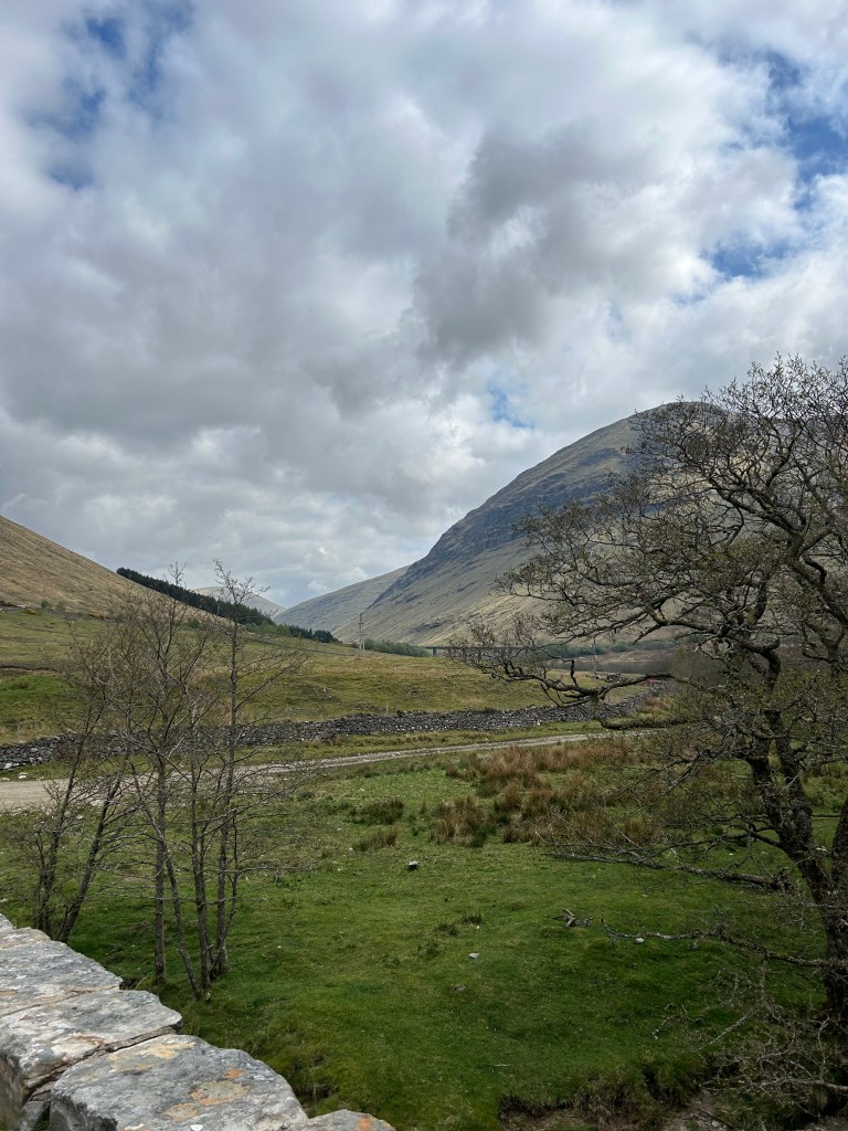 We walked through a valley along a small river for a while and moved from one jagged mountain to anther. We saw lots of sheep and ever got to walk beside some cows (no Highland cows to report). The miles came easy and we were able to make it to the Bridge of Orchy Hotel for our 12pm lunch reservation. Booking all these places to stay and eat was a pain on the front end, but it’s taken out a lot of the stress and I’m glad we did it this way. I don’t feel the need to do another “walk” like this anytime soon, though, just because it’s so boujee and the culture is different.
