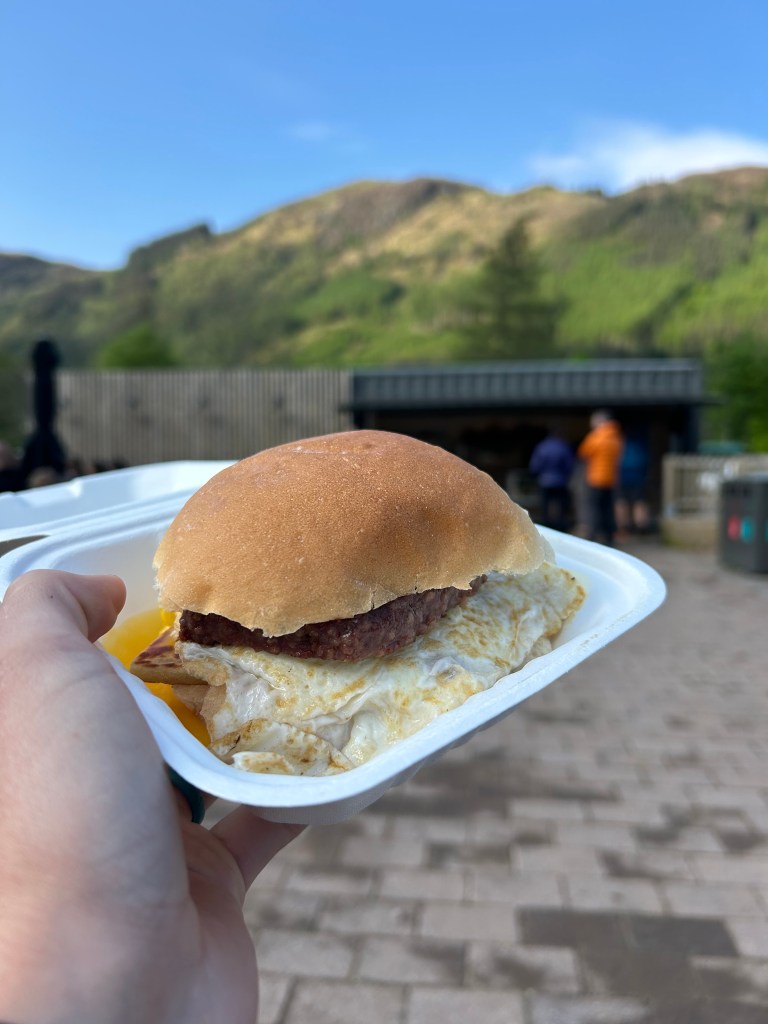 What an awesome end to a fantastic hiking trip! We have been so incredibly lucky with the weather and today was no different. We woke up around 7:30am in order to eat breakfast form the campground kitchen. We both got rolls with eggs and meat with coffee, they were really good (but not as good as Leven Bites!). We had a quick walk from the campground to the Ben Nevis Visitor Center. Unfortunately the actual visitor center was closed, but at least the bathrooms were opened.