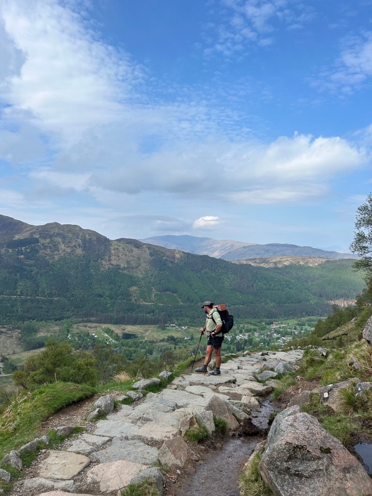We were on trail at 10am and started climbing right out of the gate. The full distance of the trial was just under ten miles with around 4400′ of gain. We started about 20′ above sea level and finished at 4413′. Ben Nevis is the tallest mountain in the UK and buddy it felt like it!
