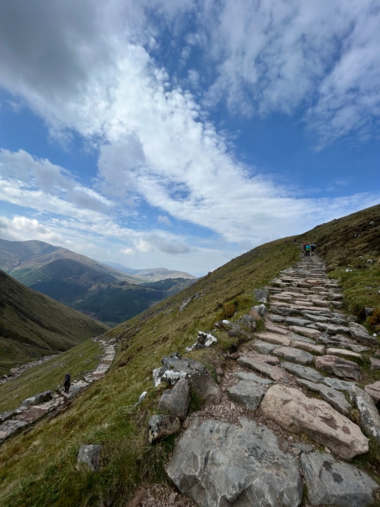 It was so pretty but after a while we were sick of the crowd and the sun and just wanted to be done. When we finally made it back down to the visitor center we made our way back into town where we went to check into the Highland Hotel. It was super old and fancy and felt like a nice treat after trail. We walked back into town for dinner after showers and ate Indian food at Cafe Mango. We went back for drinks at the hotel bar before turning in for the night. Inverness tomorrow and the official start of the second half of our honeymoon: sightseeing!