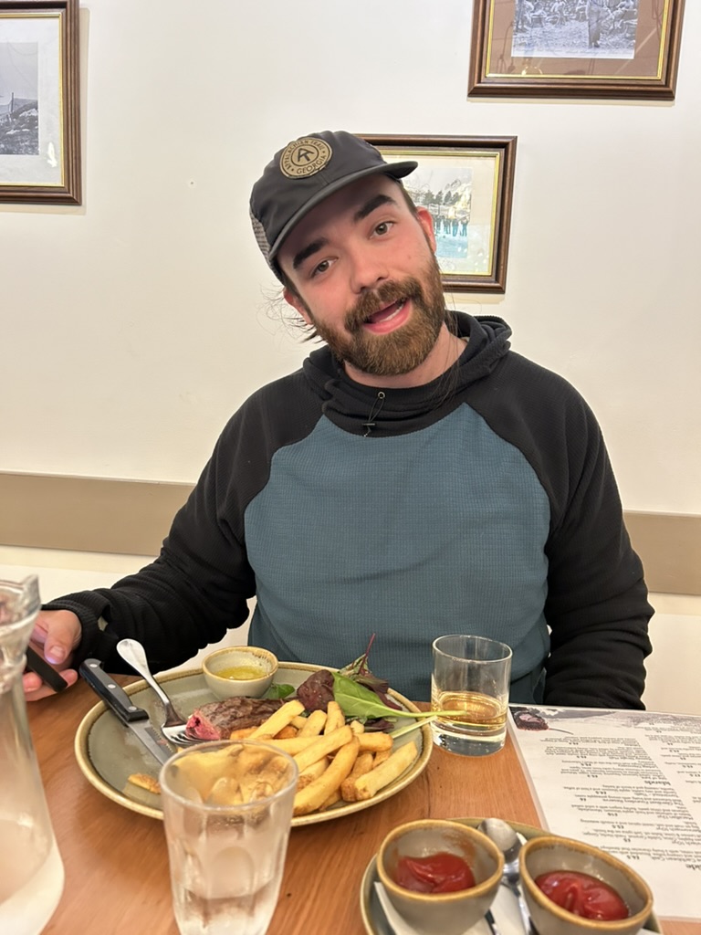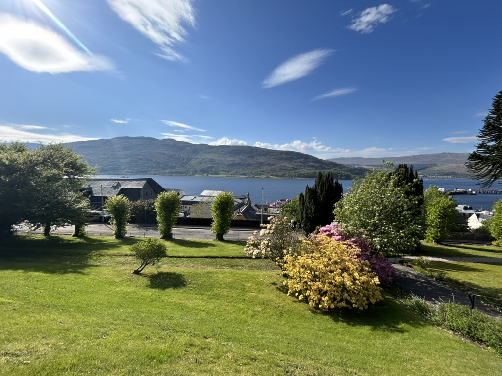 After climbing Ben Nevis we walked back into Fort William to check into our hotel. The Highland Hotel looks like a castle perched on a hilltop overlooking the water in Fort William. The location made for a beautiful backdrop, and the hotel itself was stunning. The hotel first opened in 1894 but was most recently renovated in 2008. Because it hadn’t been renovated in 16 years the room itself wasn’t the nicest, but after having been mainly sleeping in our tent for the past week it was a wonderful respite! It was clean and had a working bathroom, that’s more than most hikers can dream of. I accidentally booked us in a room with two twin beds instead of single queen, but we made the most of it and were especially thankful for the ensuite bathroom. Our only complaint was that there was no air-conditioning in the room, something we learned was common in Scotland (our stay at the Premier Inn in Milngavie at the start of our trip also didn’t have AC). We were able to prop the window open with one of our trekking poles, though, and slept just fine.