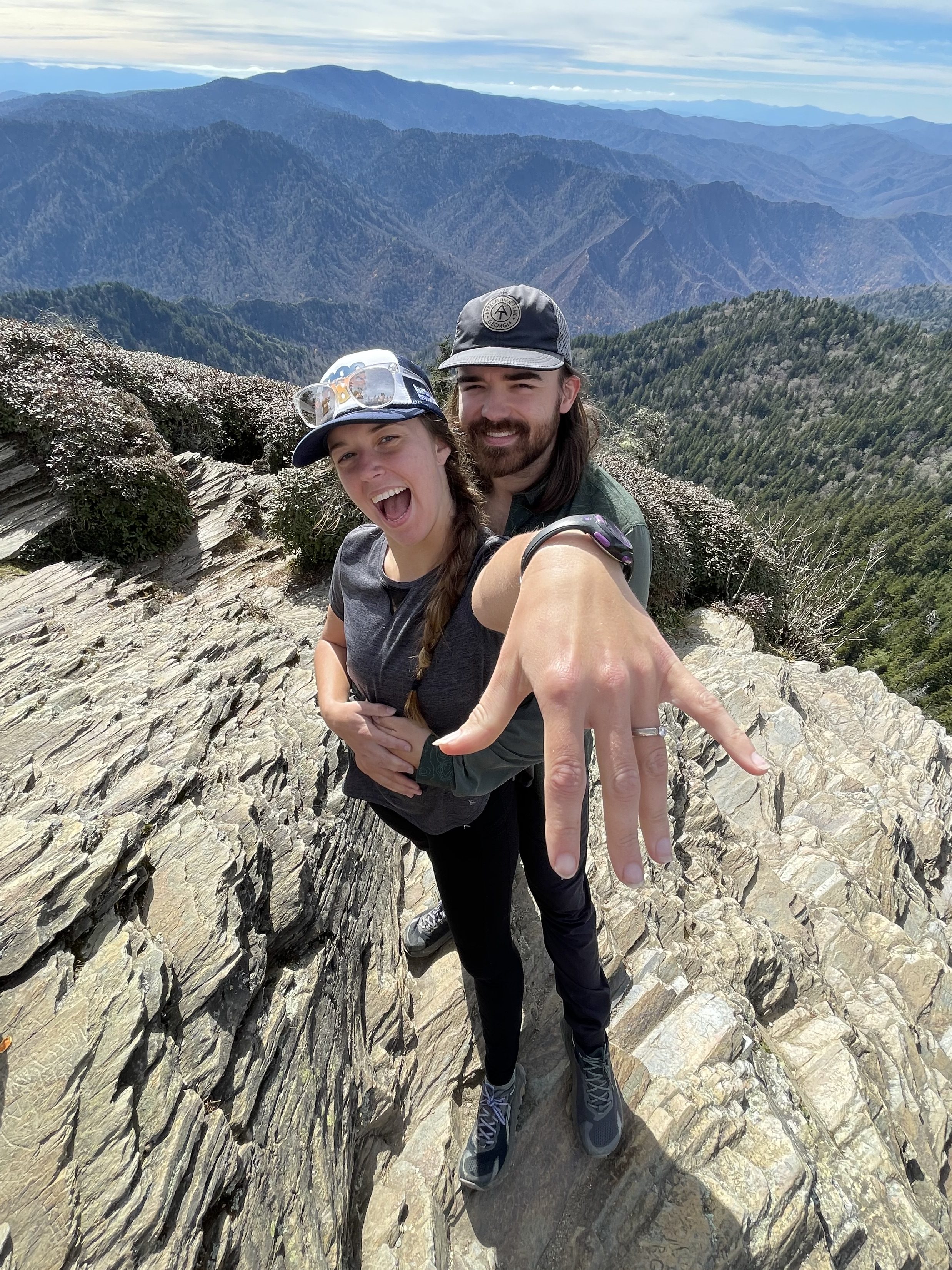 Through tears I nodded yes and Cade stood to embrace me. A small crowd was gathered at the summit, all strangers there to enjoy the spender of the Smokies. As our group began to cheer, strangers all over the mountaintop turned and let out shouts of excitement. Together we basked in the glow of celebration and the breathtaking view. Atop Katahdin I had known Truffles was the one for me, but standing on LeConte I knew we would be together forever.