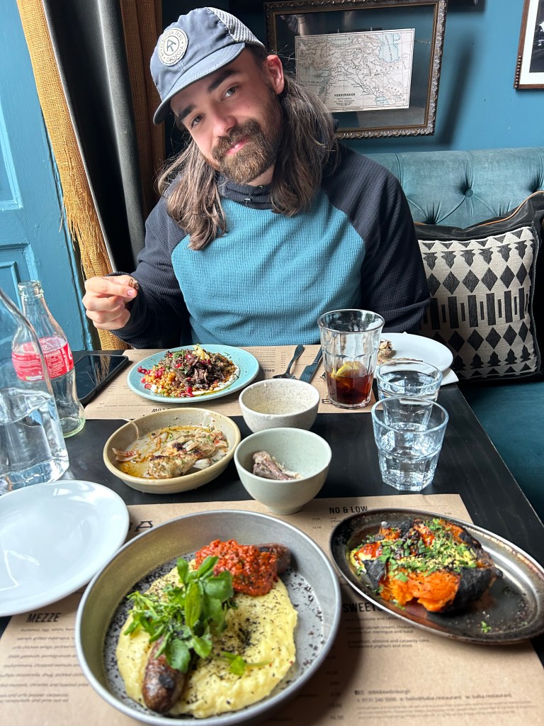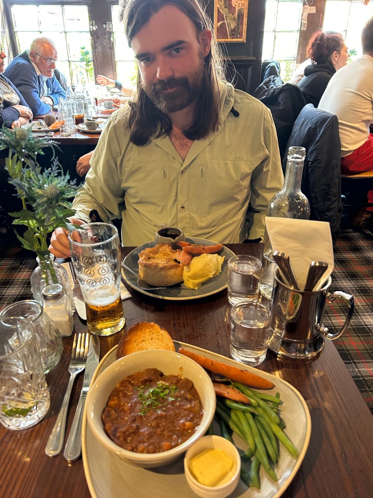 We arrived in the bustling Waverley train station and exited onto an even more lively street. We used wifi to pull up our hostel on Google Maps and walked in that general direction. Once we made it to the Royal Mile, the main pedestrian street in Edinburgh, we popped into the first restaurant that caught our eye for lunch.
