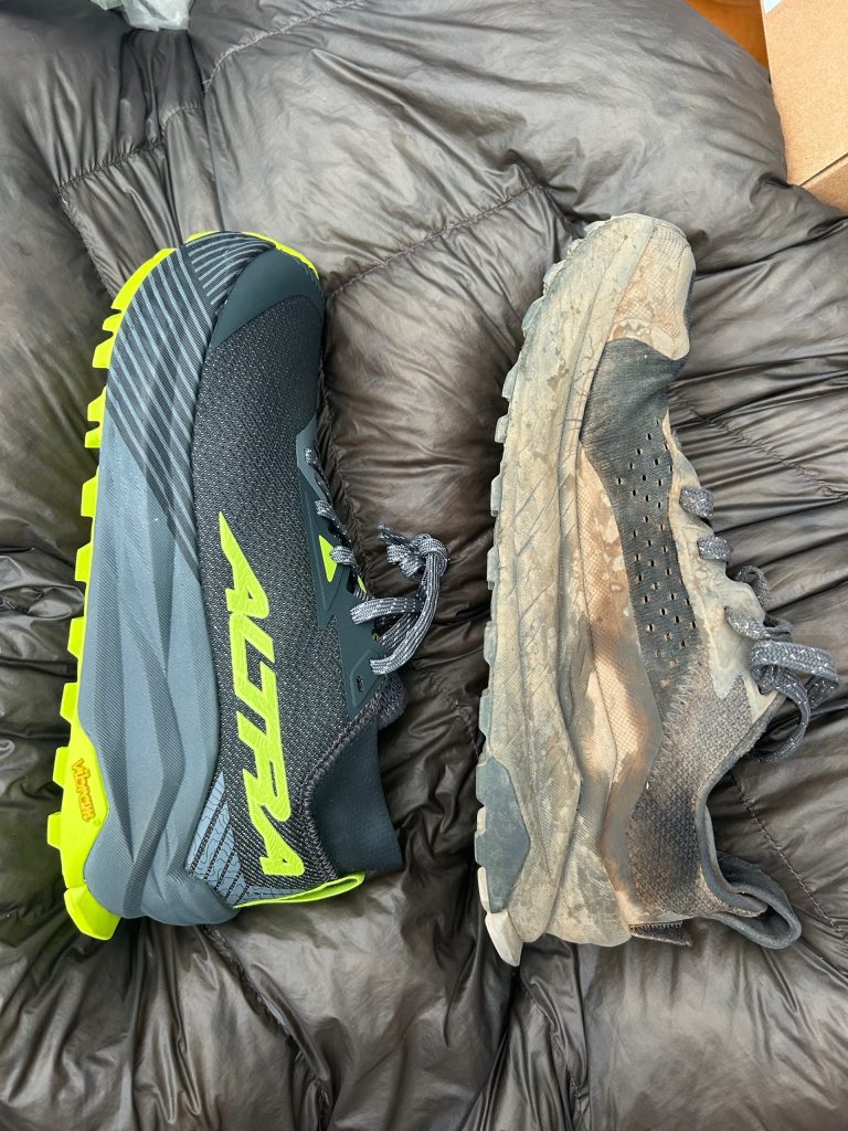 I’ve worn Altras exclusively since my first thru-hike in 2021. I started with the Olympus on the Appalachian Trail and have worn the 4, 5, and 6 models — as well as the Lone Peak 4, 5, and 9. While I like the Lone Peaks, I prefer the added cushioning of the Olympus line. On the PCT, I went through five different pairs: two pairs of the Olympus 5, two of the Olympus 6, and one pair of the Olympus 275.